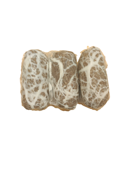 Es un embutido elaborado con carne y visceras de cerdo, cocidas, picadas y condimentadas con especias naturales entre las que destacan la canela y la nuez moscada, y toda la mezcla se envuelve en una fina mantellina de cerdo.