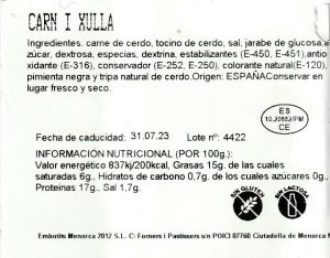 Carnixulla un embutido de menorca elaborado a partir de carne magra y tocino cortado en daditos condimentada con sal y varias especies.