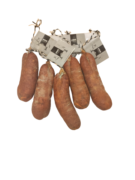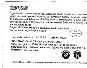 Sobrasada es el típico embutido menorquin hecho artesanalmente de cerdo negro de Menorca. Adecuada tanto para pasarla por la barbacoa, como en tortilla, como cruda.